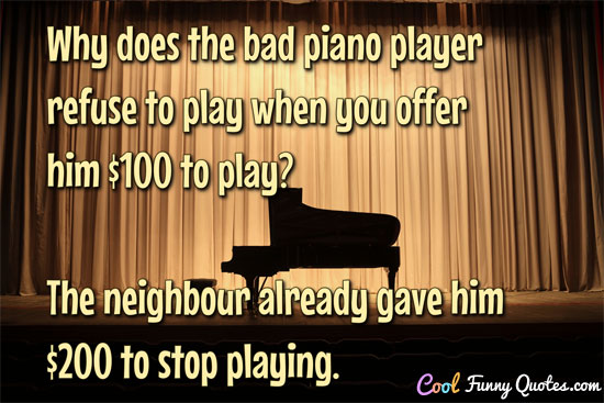 Why does the bad piano player refuse to play when you offer him $100 to play? The neighbour already gave him $200 to stop playing.