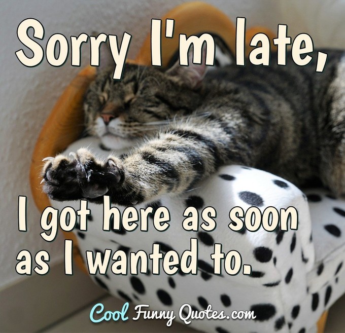 Sorry for being late, I was enjoying my last few minutes of not being here.